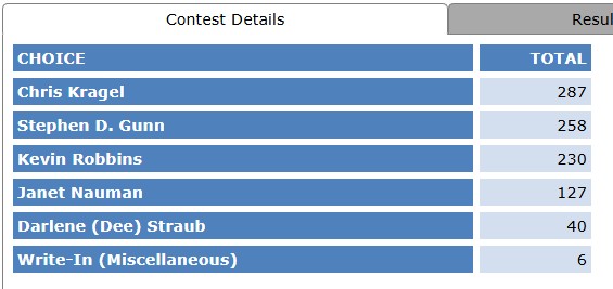 Please note: Darlene (Dee) Straub had officially withdrawn from the race.