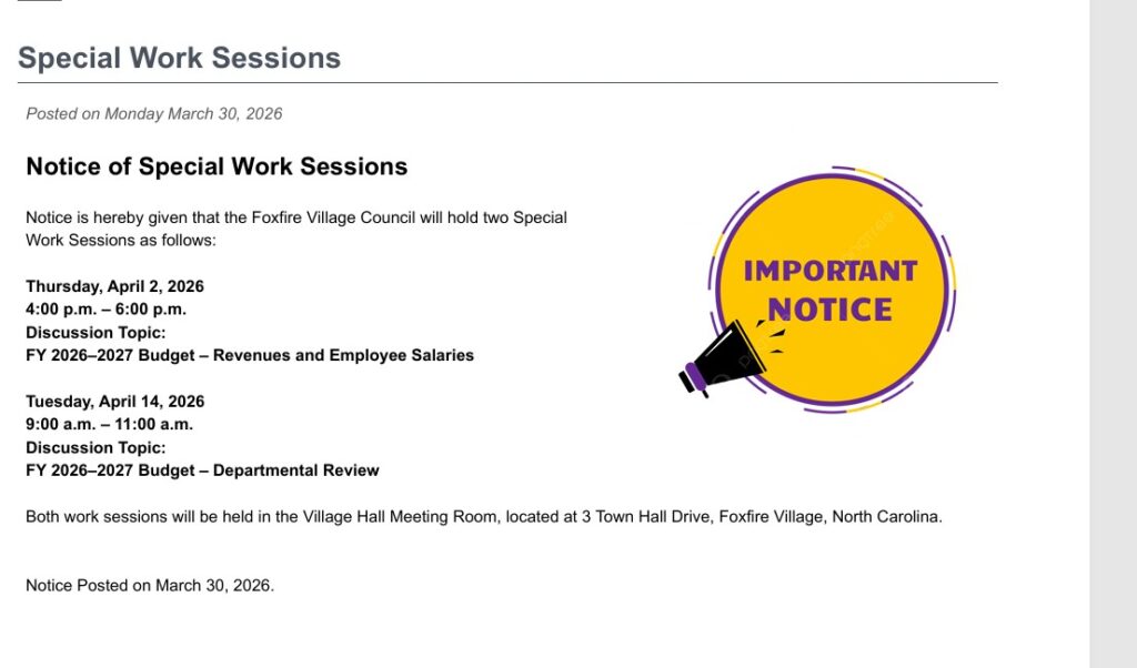 What is Missing? Special Budget Work Session April 14 @ 9:00 am Posted on 04/15/202604/15/2026 by Sandy Cameron FY 2026-2027 Budget Dept Review